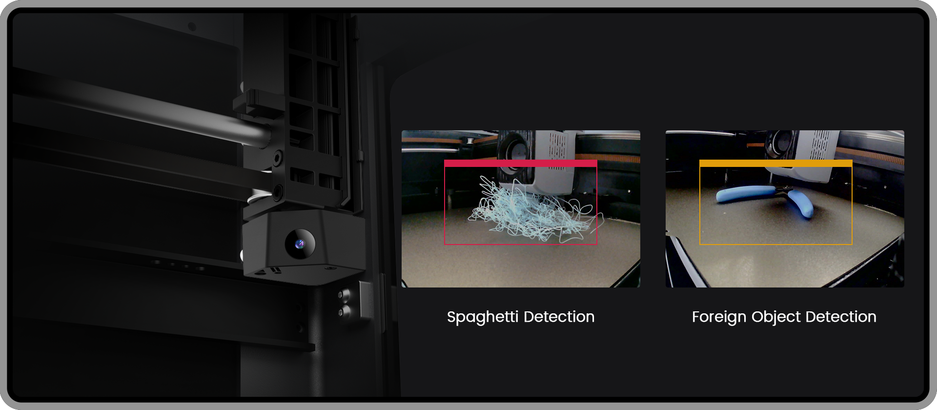 Detects foreign objects and spaghetti failuresin real time,ensuring smooth,error-freeprinting while also capturing time-lapsevideos.