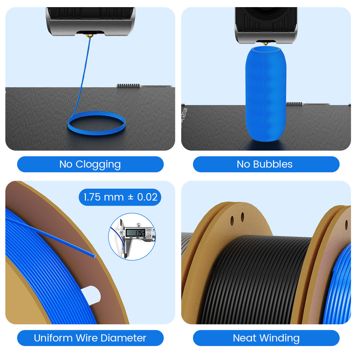Achieve high-precision, bubble-free prints with our high-purity PLA filament.  Designed for smooth feeding, consistent extrusion, and minimal warping, ensuring flawless results every time.